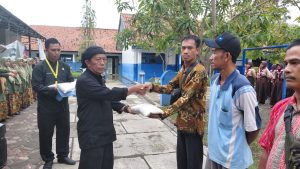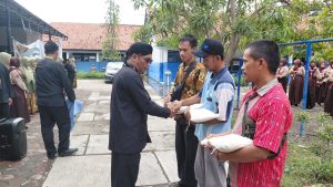 Penyerahan bantuan dari PGRI Provinsi kepada tenaga kependidikan yang terdampak banjir.